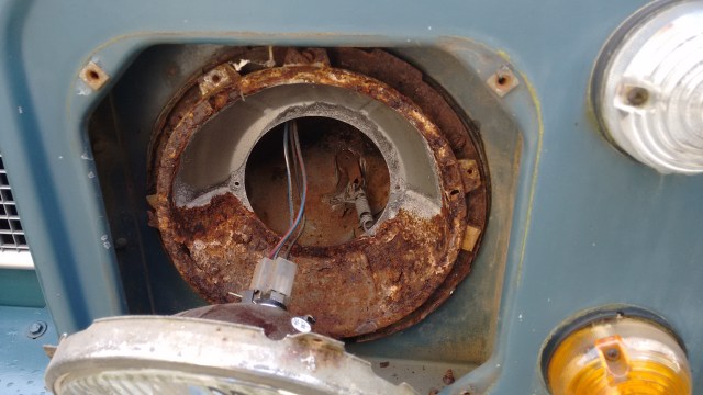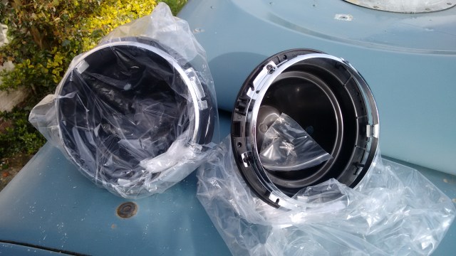 I removed the headlamp units and when I saw the rusted steel two-part bowls I wondered if I had ordered the wrong items as they are completely different, with a spring and more complex adjustment arrangement.