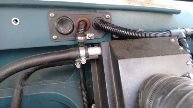 I cannot complete the other side as yet as there is still much wiring to do. I will be tidying, re-routeing and replacing most of this in a similar fashion to the now complete nearside. This will involve removal of the plate, cleaning and painting the aperture, new grommets and more convoluted conduit.