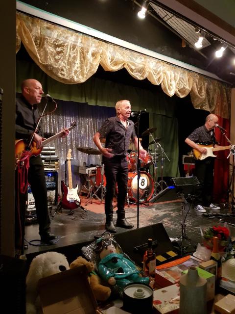 Next morning, a few cornflakes and a cool bath to wake me up and I set off to Mulbarton Social Club, they were resurfacing the A140 roundabout of the A47 so I was still late arriving. It had been agreed that I could use my bass amp, as previously we could never get the bass to work through their no-backline system as Laurie, their regular bass-player is also their sole sound man. When I arrived though, everything had been set up ready and they said that the bass was working, they had got there very early especially to sort it. I was offered Laurie’s 5-string Status bass for the day but I thought it best not to as I’ve never had more than a few minutes on one, and I hadn’t played bass since new year’s eve. There was little room for my bass amp so I agreed to plug into their rack, I could JUST hear it, so hoped it would be OK.