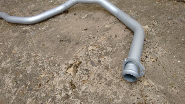 I don’t think the front pipe will be a long-term success. The manifold I bought (3-bolt type) takes an exhaust with a larger flange so the stud spacing is wider than the exhaust. So to get over it quickly I had slotted the holes in the flange, which doesn’t really leave enough material for long term use. Still, the front pipe is quite cheap so if the joint fails I shall ask a welder friend to cut and shut the pipe with a larger flange, he has quite a collection of exhausts in his garage roof space.