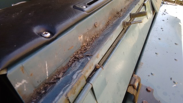 I have been concerned that the top of the bulkhead beneath the screen would be rusted away which would cause me considerable problems as a non-welder, so I hardly dared look as I eased the heavy assembly forward.