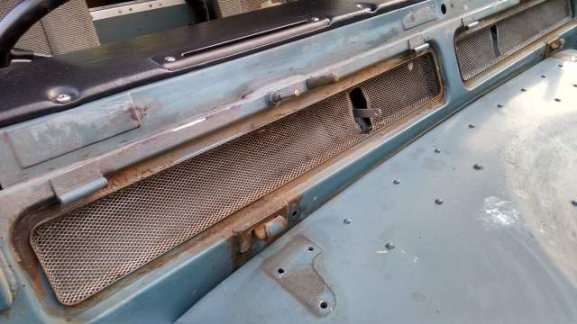 I removed the fresh air vent flaps and the rubber seals. The seals were OK but the point of this exercise is to inspect for rust, treat as necessary and paint. On removing these I could see that the seal recesses had not fared so well, but they are still solid and will rub down to shiny metal quite easily.